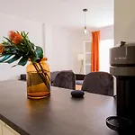 O apartamento está equipado com sofá, secretária e máquinas de café/chá e cozinha totalmente equipada com microondas, chaleira elétrica e um frigorífico. A propriedade também tem 2 casas de banho. Este apartamento convida os hóspedes a 2 quartos. As casas de banho privadas têm chuveiro de abrir e casa de banho à parte.